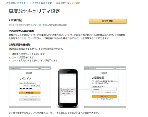 アマゾンのアカウントに2段階認証を設定する手順の概要を説明する。細かい手順は公式サイトのヘルプページに書かれているので、設定時の注意事項やどんな情報を設定すればいいかの参考情報としてほしい。